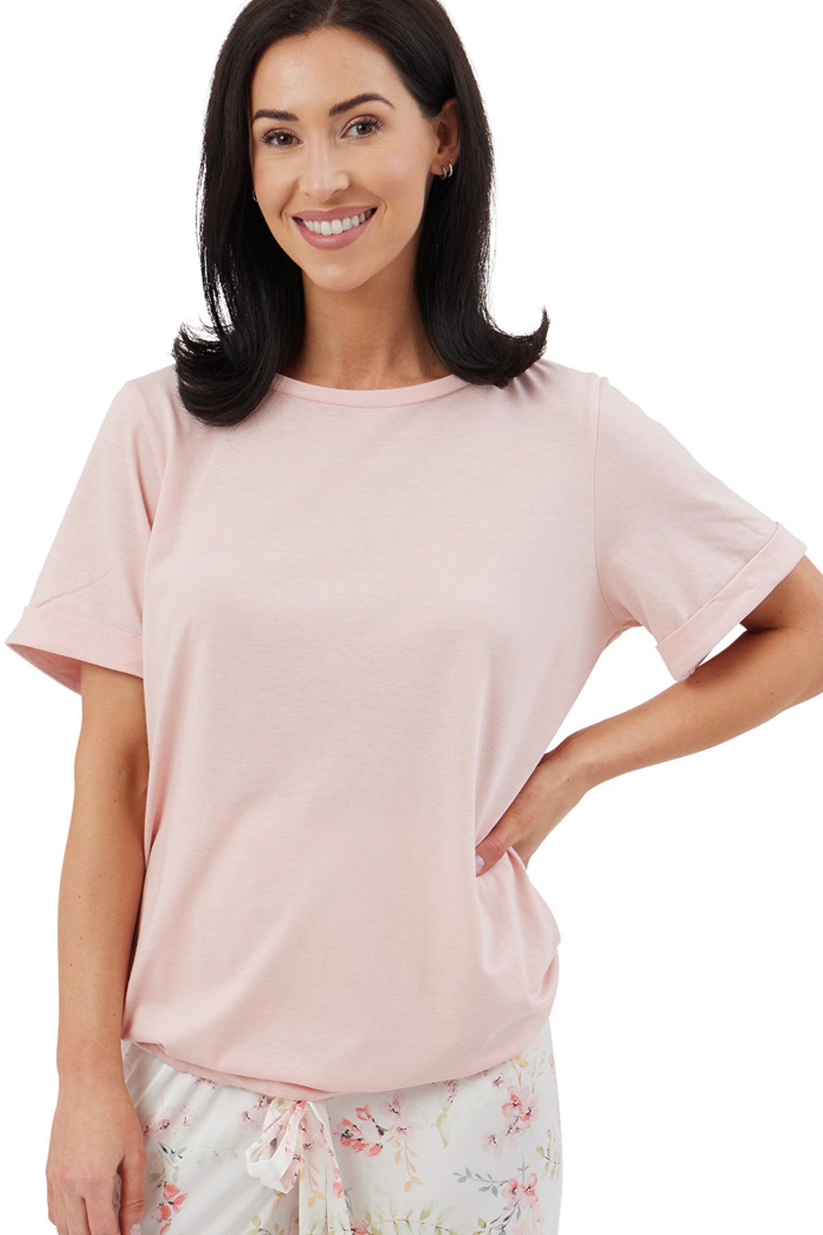 Our slouchy pure cotton top features a sleek satin hip tie for adjustable comfort and style, while the matte satin pyjama bottoms showcase a soft Watercolour Floral print for a touch of subtle femininity. This beautiful women's pyjama set is perfect for both lounging and sleeping-and makes a thoughtful gift any time of year!
