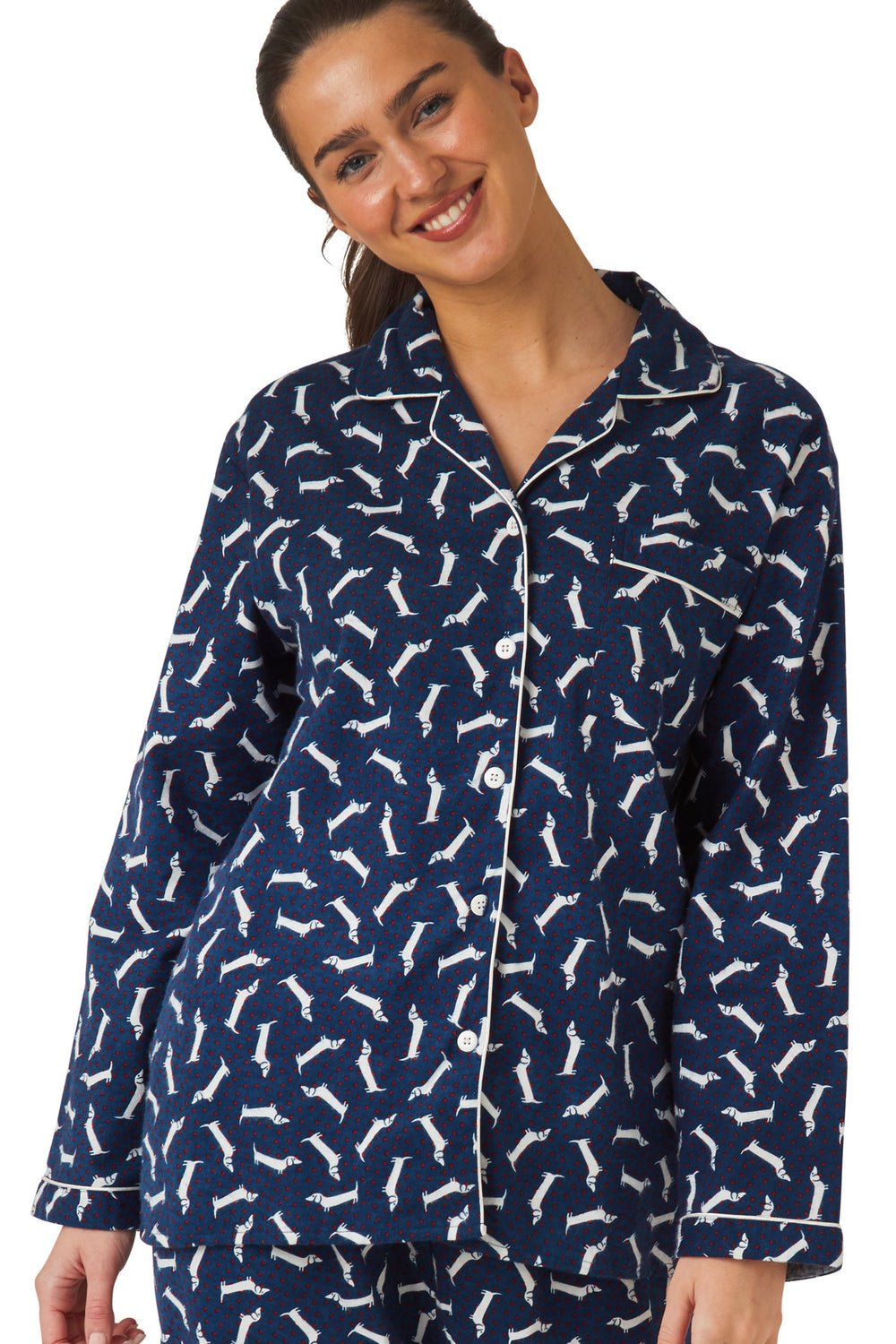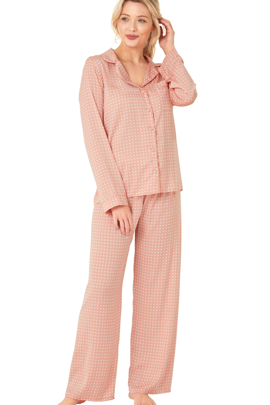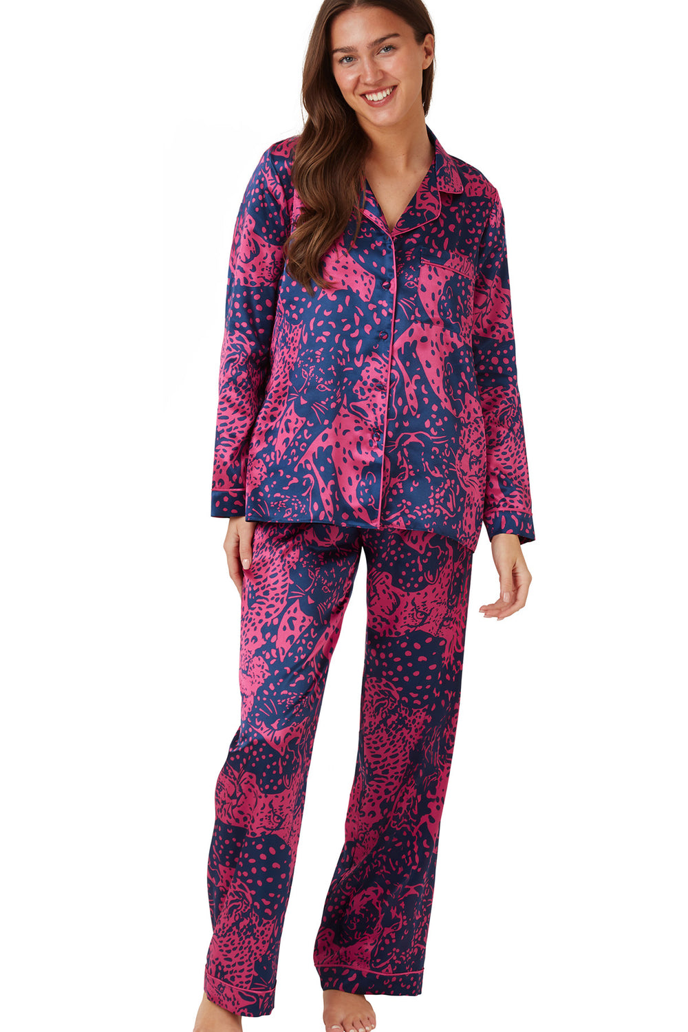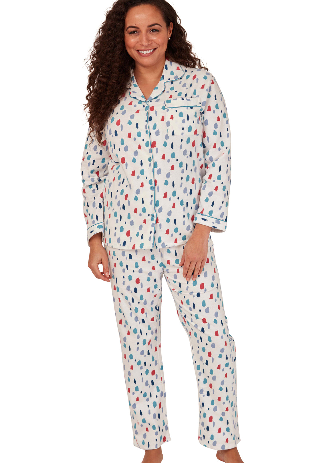 Get ready to cosy up in the softest, dreamiest pyjamas! Whether you love classic comfort or chic luxury, our pyjama collection has something for every style. Wrap yourself in ultra-soft brushed cotton pyjamas, featuring adorable prints that match perfectly with our other nightwear ranges. Prefer something lightweight? Our fresh and airy woven viscose pyjamas, including cropped-leg styles, are ideal for warmer nights. Indulge in elegance with silky satin piped revere-collar PJs or opt for a feminine touch with lace-trimmed camisole sets. From cosy loungewear to stylish sleepwear, our latest ladies' pyjama collection is designed to keep you feeling as fabulous as you look—all night long! Shop now and discover the perfect blend of comfort and fashion.